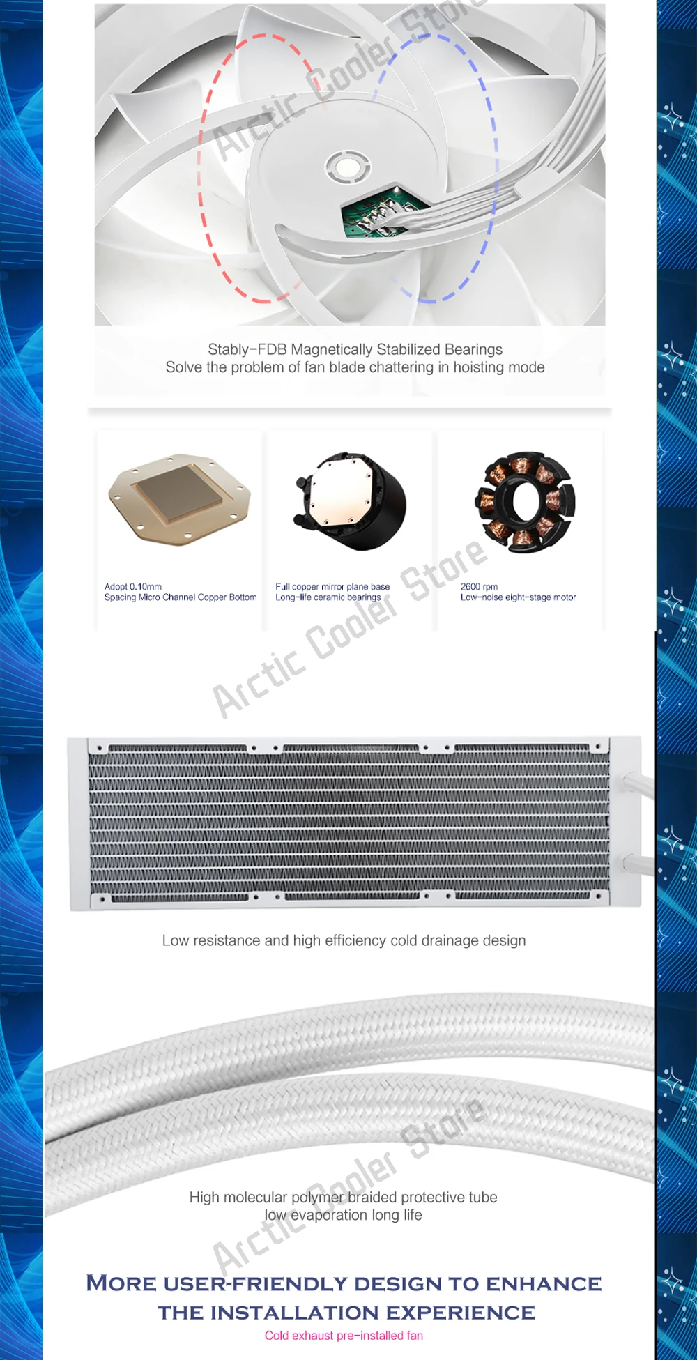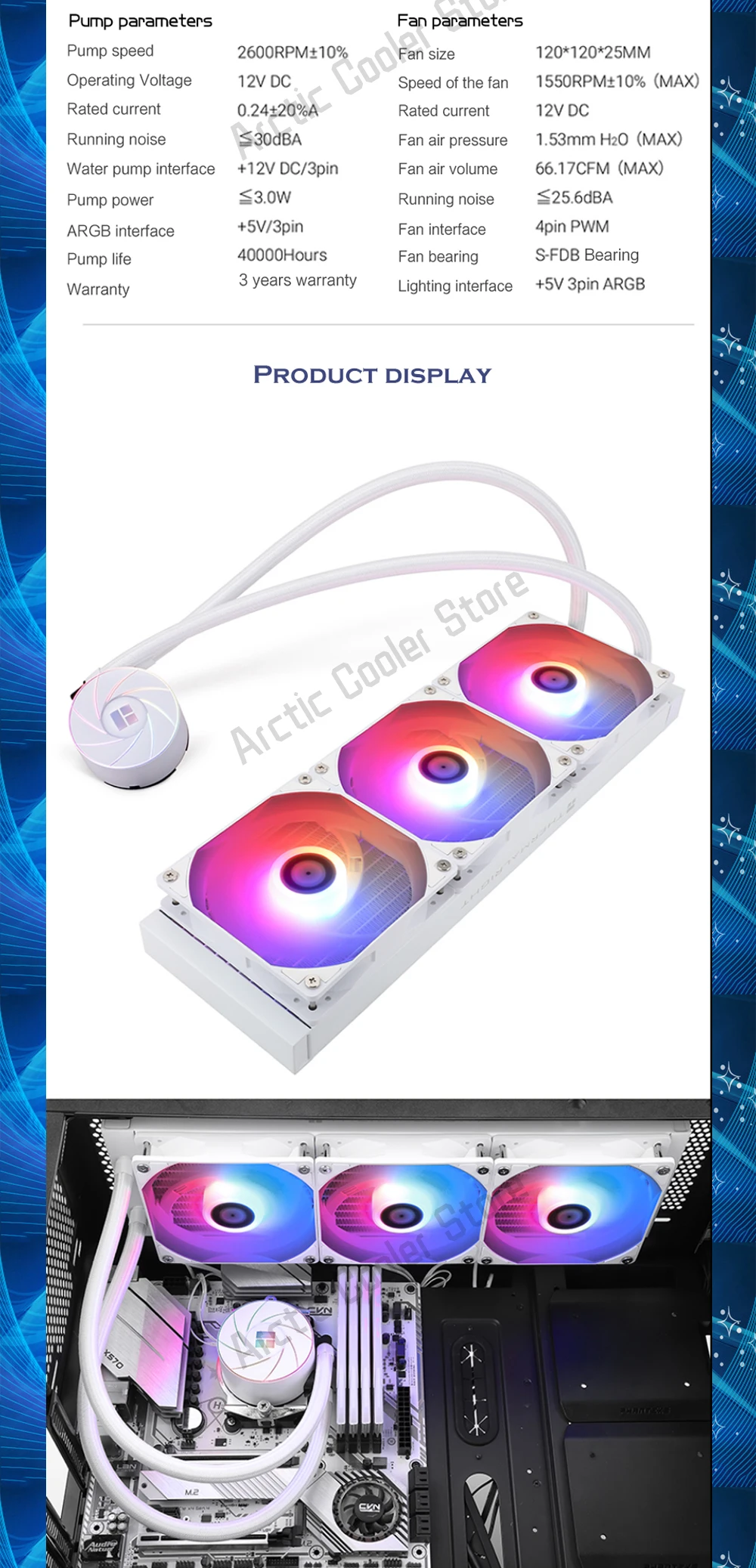 - PWM-Controlled Pump and Fans : PWM control enables both the pump and radiator fans to spin at slower speeds when the CPU is idling or under light load, helping to keep noise levels to a minimum.