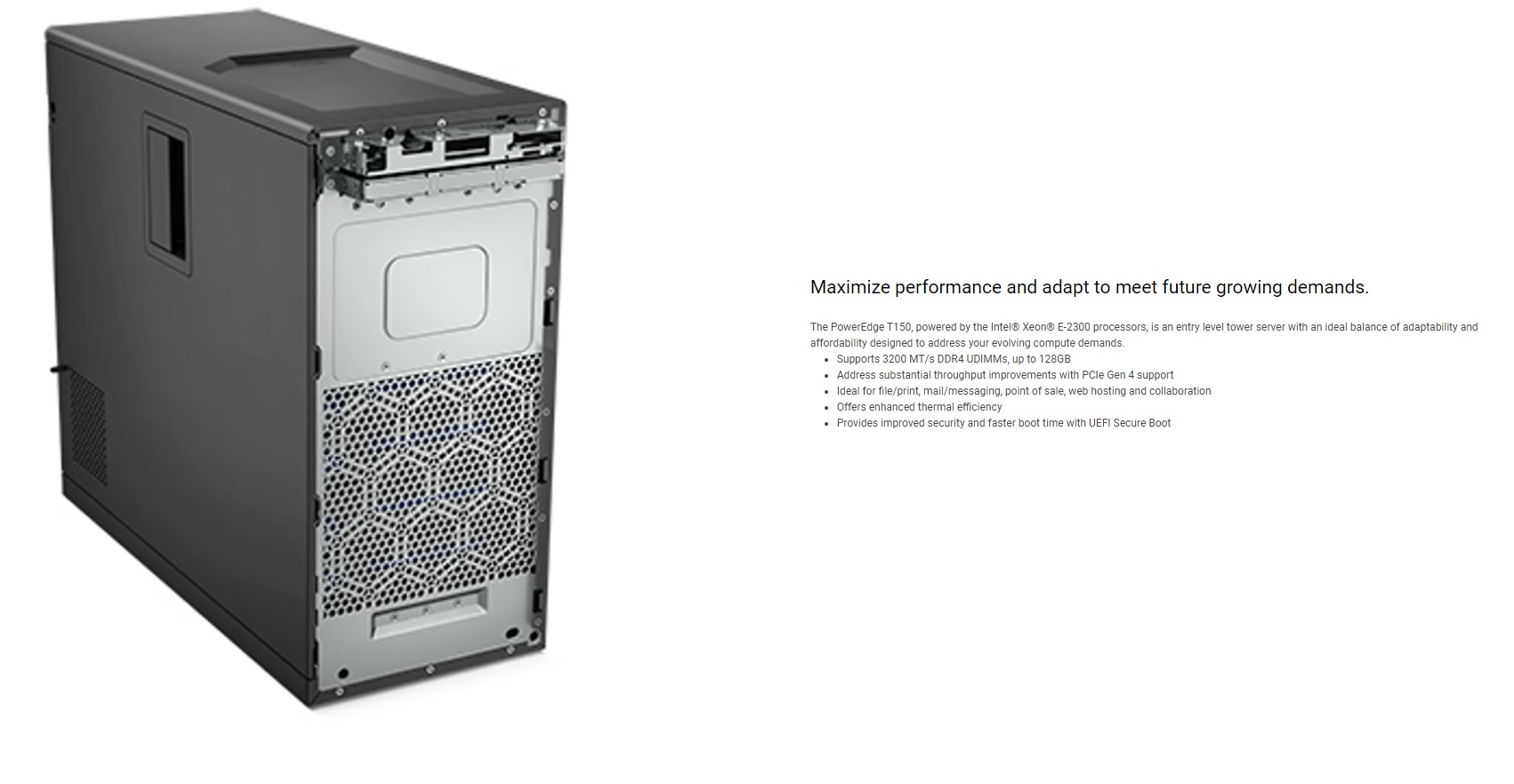 DELL EMC PowerEdge T150 Tower Server Intel Xeon E-2300 | RAM 8GB 3200MHz UDIMM DDR4 | SSD 1TB SATA 3.5″