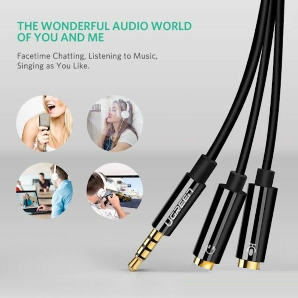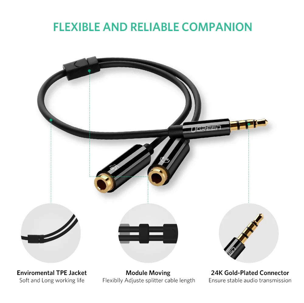 UGREEN Headphone Splitter 3.5mm 2 Female to 1 Male Mic and Audio Y Splitter TRRS Headset Adapter Cable Stereo Compatible with Laptop PS4 Xbox PC Phone Tablet Gaming | UGREEN-30620