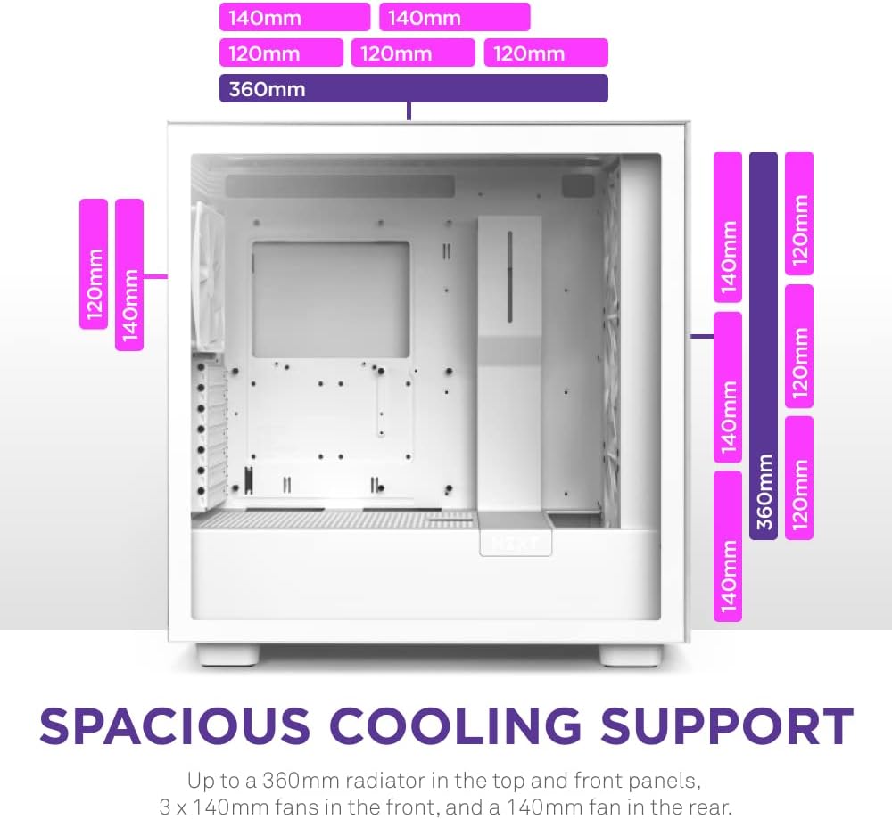 - SPACIOUS COOLING SUPPORT: Up to a 360mm radiator in the top and front panels, 3 x 140mm fans in the front, and a 140mm fan in the rear.