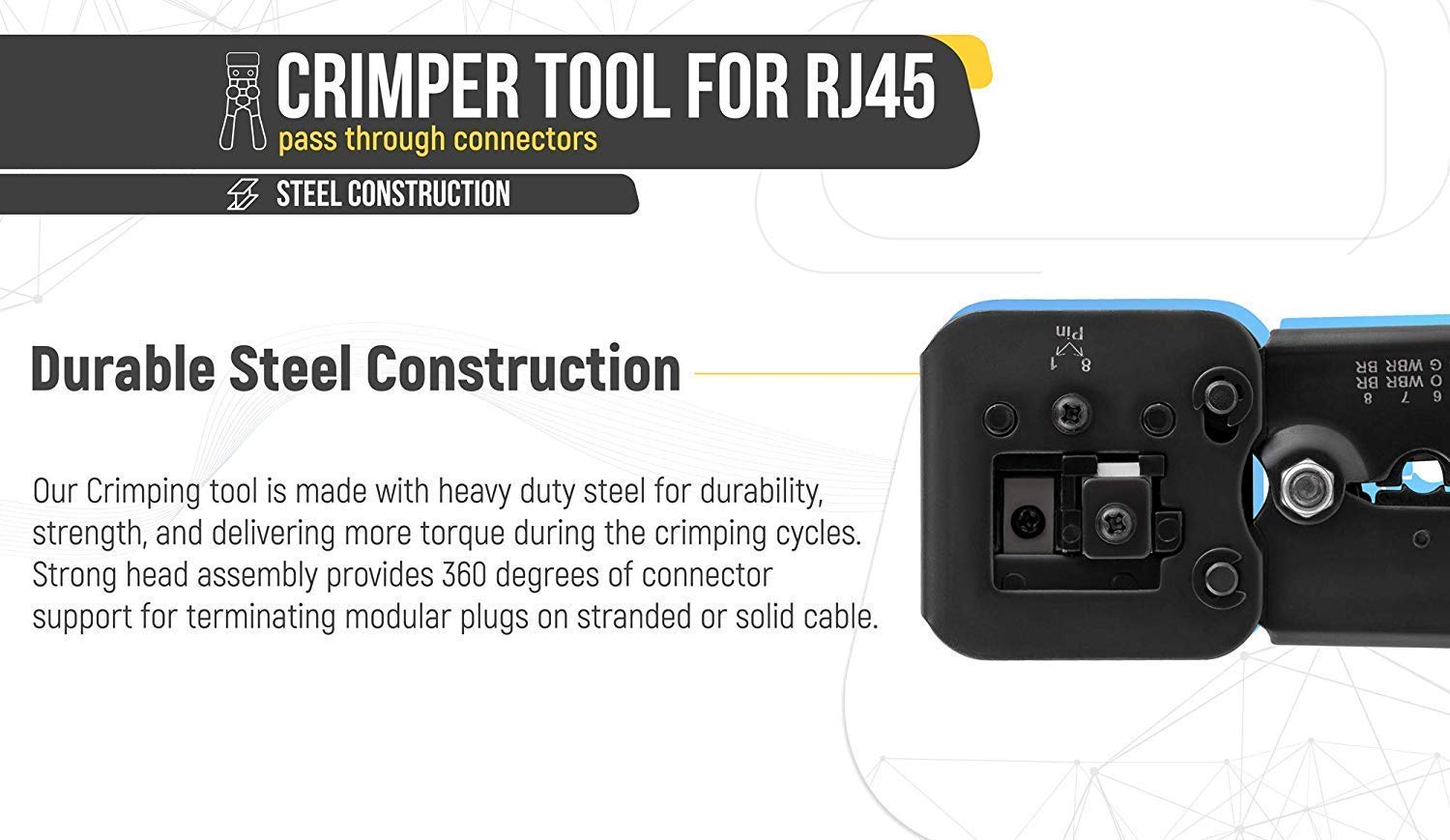 RJ45 Crimping Tool for Pass Through Connector RJ11 & RJ45 Plugs Networking Cat6