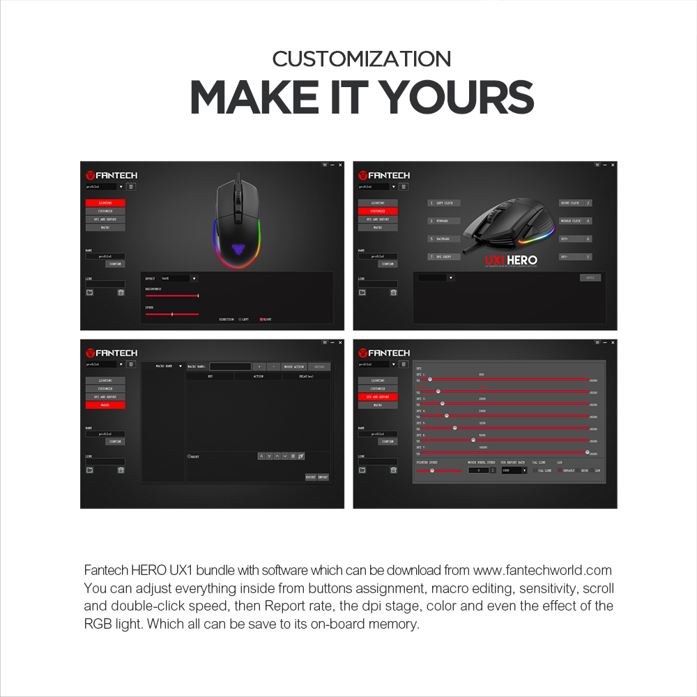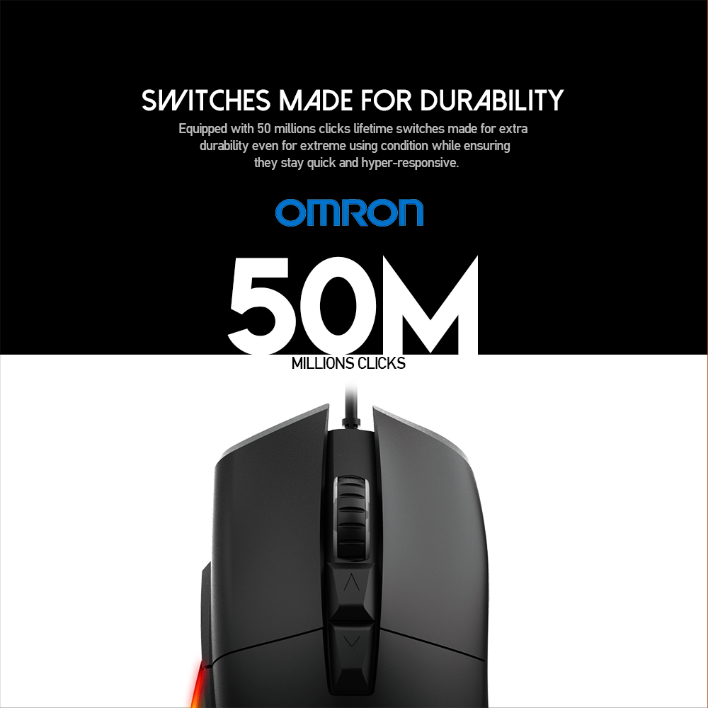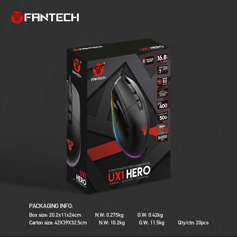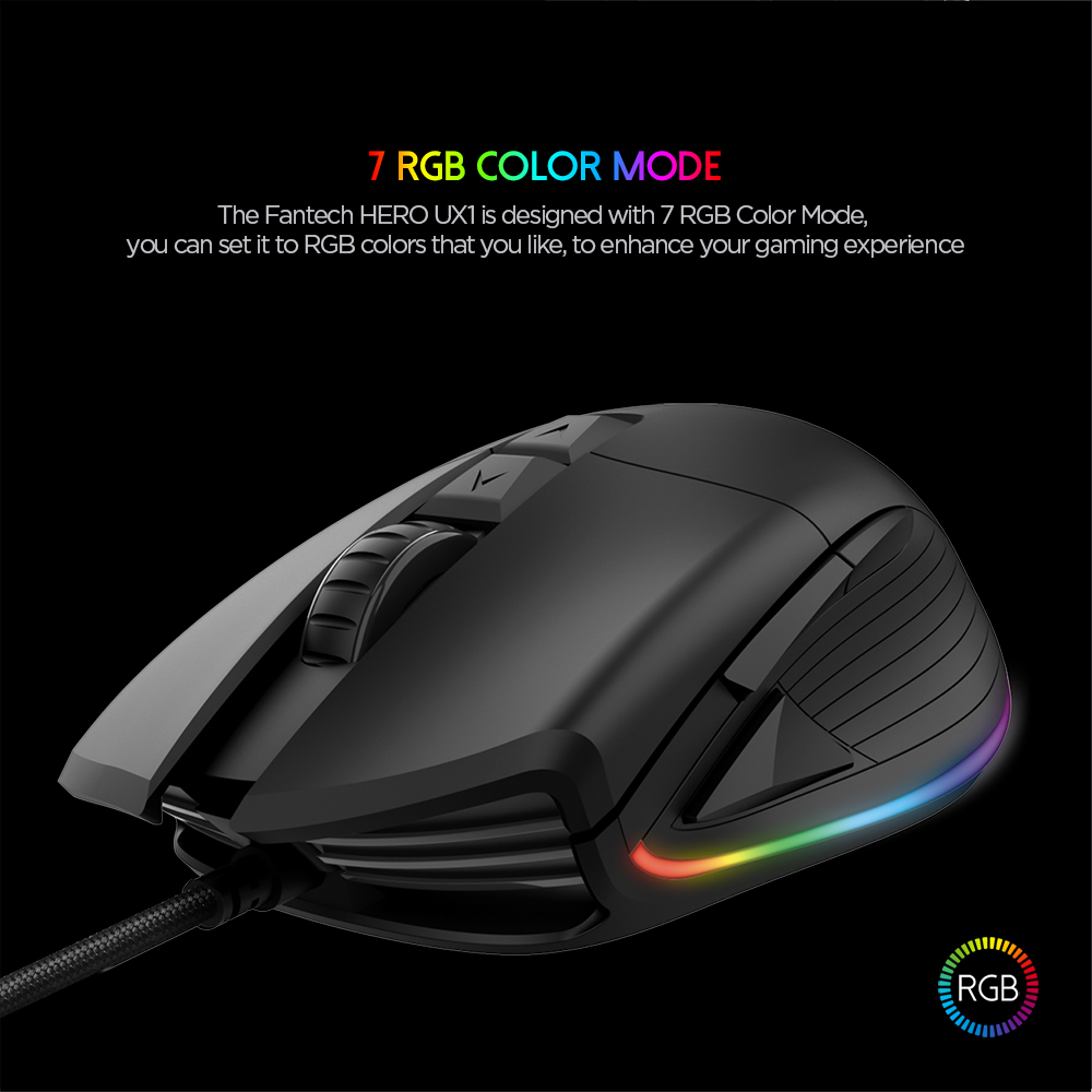 UX1 HERO ULTIMATE MACRO RGB GAMING MOUSE – 400 IPS / 50G Acceleration – RGB 16.8 Million Options – Wired 1.8m Nylon Braided USB Cable – 8 Programmable Buttons