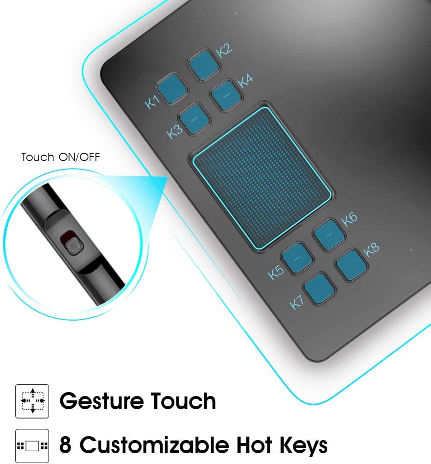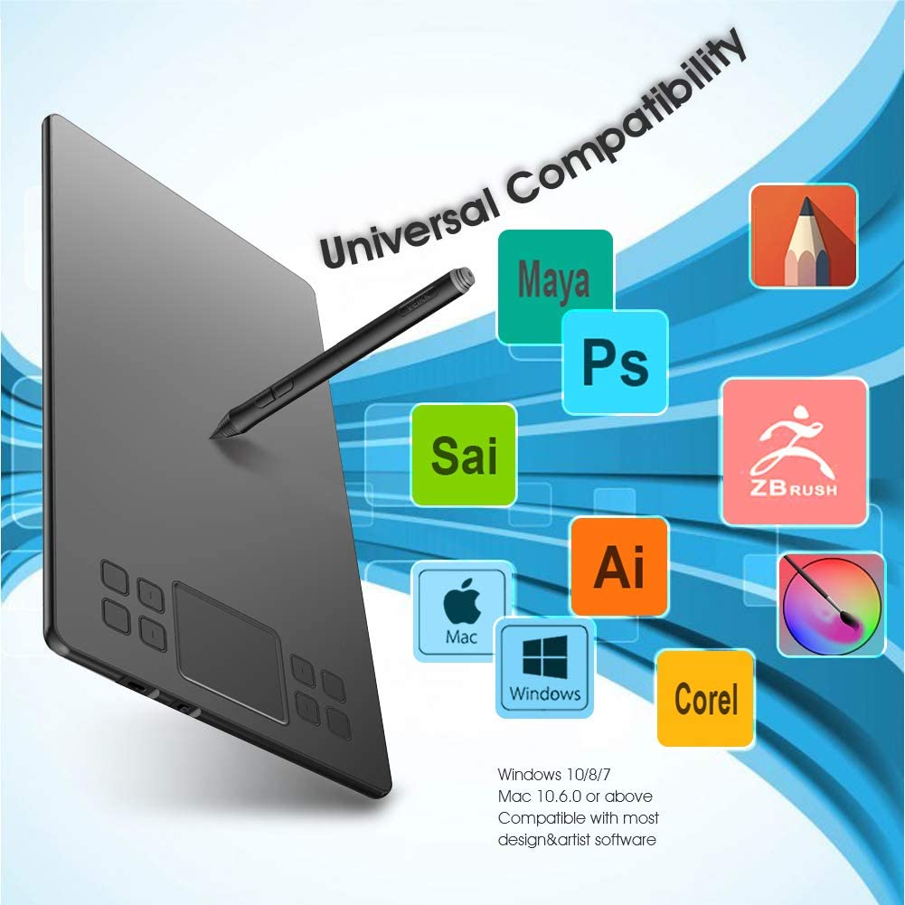 You can be more productive with the touchpad and 8 customizable shortcut keys. The 8192 levels of pressure sensitivity and 290 PPS reporting rate allow you to create freely on the sizeable 10×6 inch workspace.